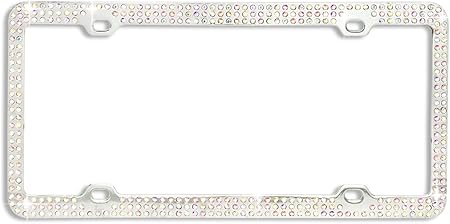 Amazon ナンバープレートキラキラフレーム クリスタルラインストーン3列 シルバーメタル キラキラキャップ ネジ付き 標準 Cr ナンバーカバー ホルダー 車 バイク